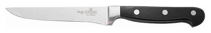 Универсальный нож Luxstahl Profi A-5007 используется на предприятиях общественного питания и торговли, в частных домах и квартирах. Изделие оснащено шейкой, которая обеспечивает плавный переход лезвия в рукоятку и защищает пальцы, не допуская их контакта с лезвием, тремя заклепками и открытым хвостовиком для баланса ножа. Нож изготовлен методом ковки и подходит для интенсивного использования. Лезвие выполнено из стали 3Cr13, рукоять - из пластика повышенной ударопрочности. Дополнительные характеристики: