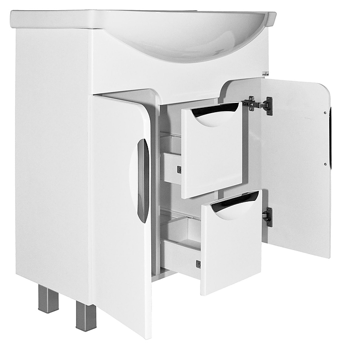 Тумба под раковину Mixline Кассиопея-75 идеально впишется в интерьер любой ванной комнаты. Напольная конструкция обеспечивает легкий монтаж и не требует специального ремонта в помещении. Модель оснащена 2 распашными дверцами, отделеними внутри для хранения ванных принадлежностей, а также 2 ящиками полного выдвижения с шариковыми направляющими. Корпус выполнен из ЛДСП, фасад - из МДФ с пленкой ПВХ. Тумба может использоваться вместе с раковиной Mixline Элеганс-75. Комплектация: