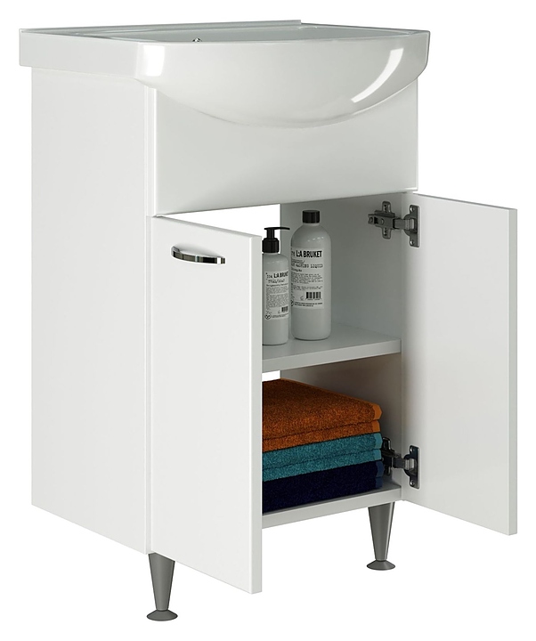 Тумба под раковину Mixline Стандарт-55 идеально впишется в интерьер любой ванной комнаты. Напольная конструкция обеспечивает легкий монтаж и не требует специального ремонта в помещении. Модель оснащена 2 распашными дверцами и 2 отделениями внутри для хранения ванных принадлежностей. Корпус выполнен из ЛДСП, фасад - из МДФ с пленкой ПВХ. Тумба может использоваться вместе с раковиной Mixline Арго-55. Комплектация:
