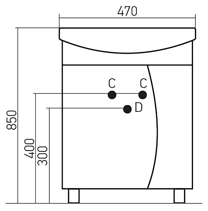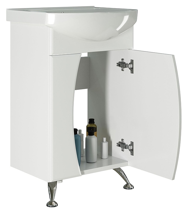 Тумба под раковину Mixline Лаура-47 идеально впишется в интерьер любой ванной комнаты. Напольная конструкция обеспечивает легкий монтаж и не требует специального ремонта в помещении. Модель оснащена распашной дверцей и отделением внутри для хранения ванных принадлежностей. Корпус выполнен из ЛДСП, фасад - из МДФ с пленкой ПВХ. Тумба может использоваться вместе с раковиной Mixline Дора-47. Комплектация: