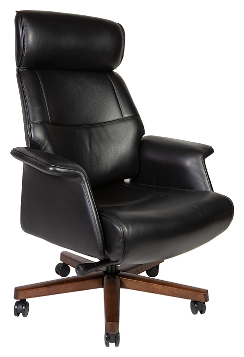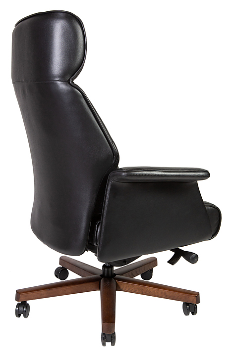 Кресло NORDEN Вагнер предназначено для меблировки офисов и современных домашних кабинетов. Модель оснащена высокой спинкой с подголовником. Обивка спинки, сиденья и подлокотников выполнена из кожи, наполнение сиденья - из пенополиуретана, каркас и крестовина - из дерева. Особенности: