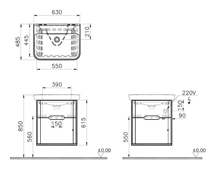 Тумба с раковиной Vitra Sento 63 60834 63 см