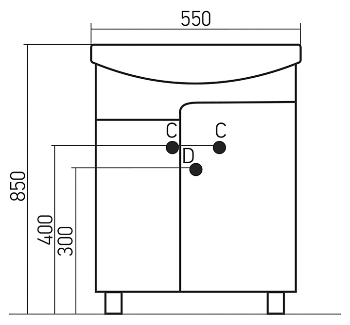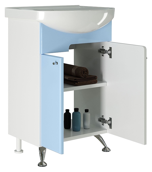 Тумба под раковину Mixline Посейдон-55 идеально впишется в интерьер любой ванной комнаты. Напольная конструкция обеспечивает легкий монтаж и не требует специального ремонта в помещении. Модель оснащена 2 распашными дверцами и 2 отделениями внутри для хранения ванных принадлежностей. Корпус выполнен из ЛДСП, фасад - из МДФ с пленкой ПВХ. Тумба может использоваться вместе с раковиной Mixline Уют-55. Комплектация: