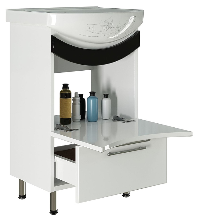 Тумба под раковину Mixline Радуга-50 идеально впишется в интерьер любой ванной комнаты. Напольная конструкция обеспечивает легкий монтаж и не требует специального ремонта в помещении. Модель оснащена откидной дверцей, отделением внутри для хранения ванных принадлежностей и выдвижным ящиком. Корпус выполнен из ЛДСП, фасад - из МДФ с пленкой ПВХ. Тумба может использоваться вместе с раковиной Mixline Арго-50. Комплектация: