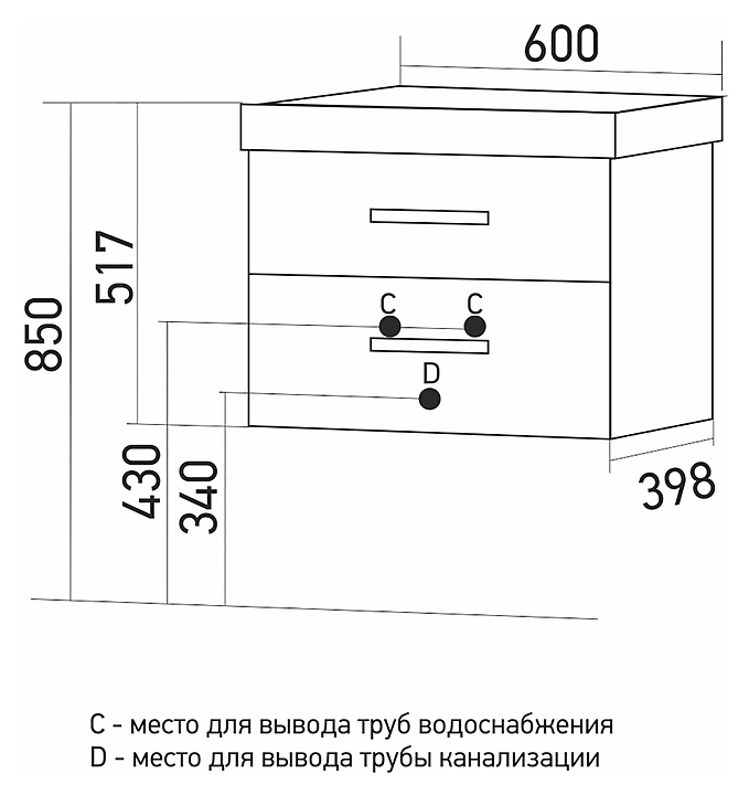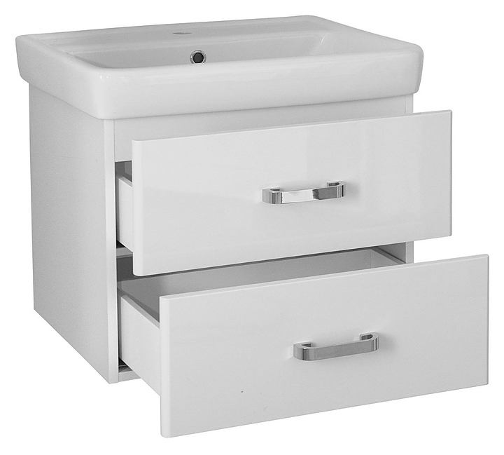 Тумба под раковину Mixline Стив-60 подвесная с 2 ящиками, белая