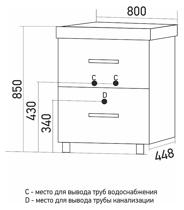 Тумба под раковину Mixline Стив-80 напольная с 2 ящиками, белая