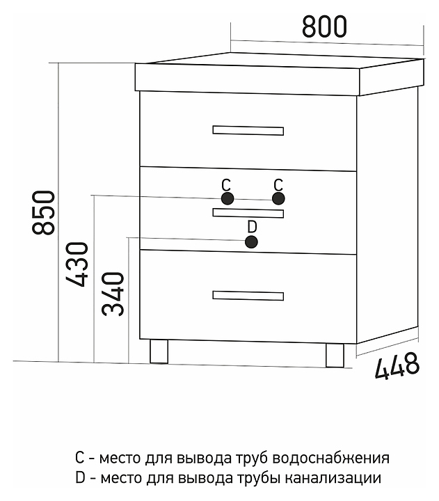 Тумба под раковину Mixline Стив-80 напольная с 3 ящиками, белая