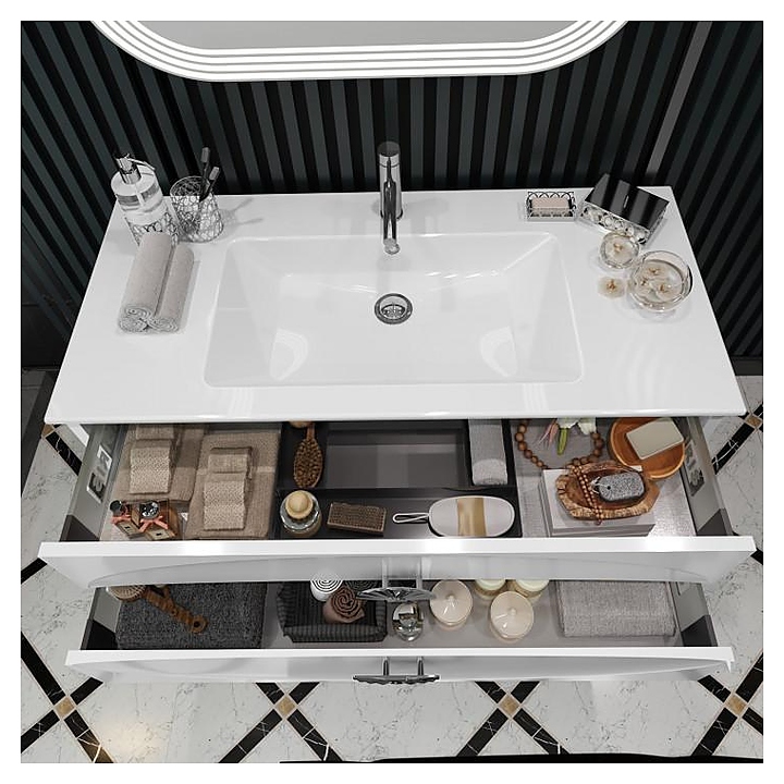 Гарнитур OPADIRIS Ибица 120 выполнен в современном стиле. Тумба оснащена 2 ящиками с механизмом плавного закрытия, зеркало - LED-подсветкой, раковина имеет слив-перелив и одно отверстие для смесителя, расположенное по центру. Благодаря подвесной конструкции изделие не занимает много места и обеспечивает легкую уборку в ванной комнате. Комплектация:
