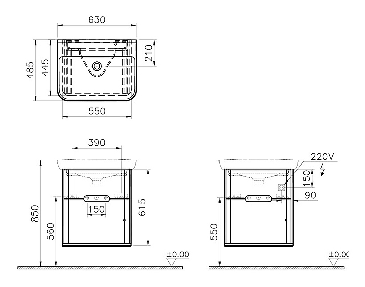 Тумба с раковиной Vitra Sento 65 60822 65 см