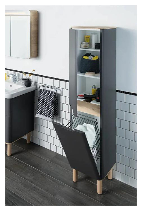 Шкаф-пенал Vitra Sento 40 60856 дополнит интерьер ванной комнаты. Модель оборудована распашной дверью, полками, механизмом доводчика и бельевой корзиной, также возможна напольная установка. Изделие выполнено из МДФ в матовой пленке для защиты от внешних воздействий. Ножки в комплект поставки не входят и приобретаются отдельно. Дополнительные характеристики: