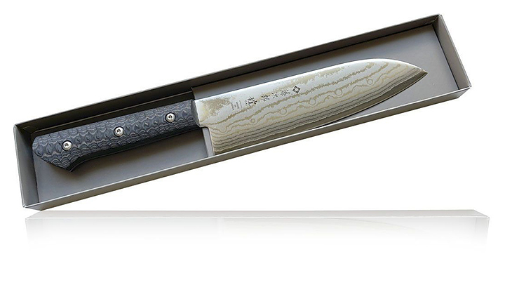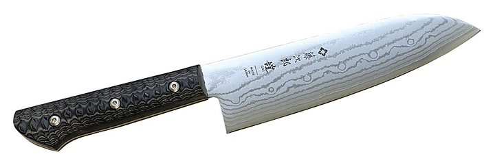 Нож сантоку Tojiro F-1351 серии GAI предназначен для чистки, нарезания, шинкования любых продуктов в ресторанах и кафе. Лезвие выполнено из стали VG-10 в обкладках из дамаска, рукоятка - из микарты. Особенности: