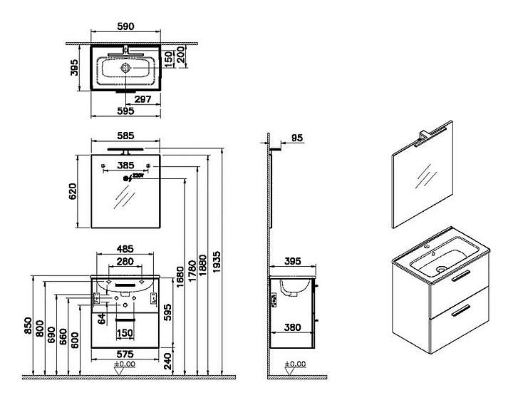 Гарнитур Vitra Mia 60 75021 выполнен в стиле модерн. Благодаря подвесной конструкции комплект экономит место и облегчает уборку. В комплект входят тумба под раковину, раковина и зеркало. Тумба оснащена 2 выдвижными ящиками с доводчиками, зеркало - светодиодной подсветкой. Корпус мебели выполнен из ДСП с меламиновым покрытием, раковина - из фарфора с антибактериальным покрытием. Дополнительные характеристики: