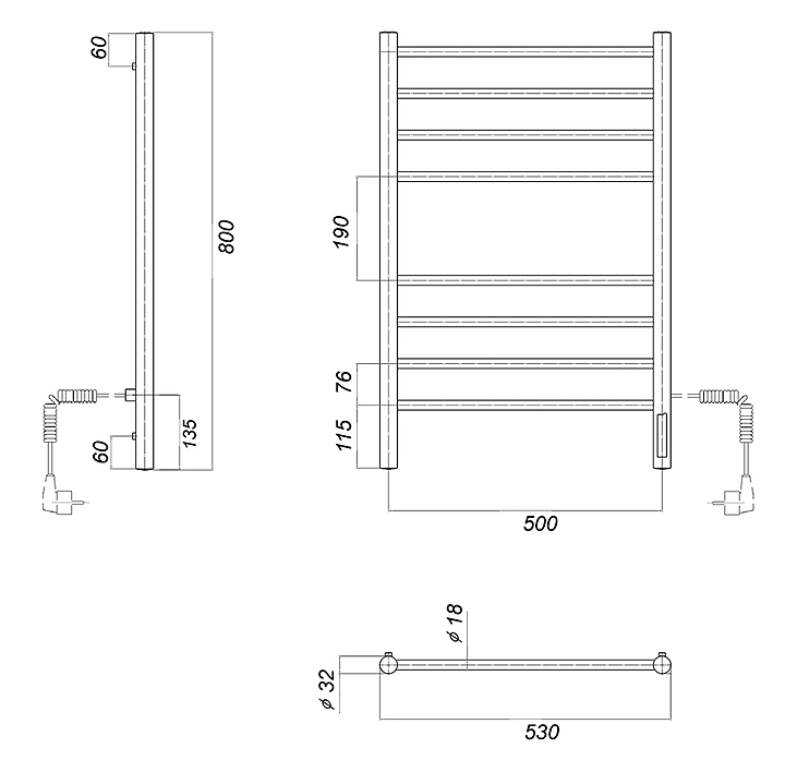 Полотенцесушитель электрический Domoterm Медея П8 50x80 см БЕЛ EK R, правый