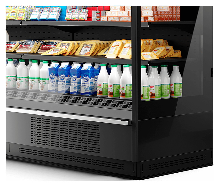 Холодильная горка Dazzl Vega SG 080 H210 M 190 Plug-in предназначена для эффектной демонстрации и кратковременного предпродажного хранения предварительно охлажденной мясной продукции на предприятиях общественного питания и торговли. Модель оснащена подставкой с встроенным холодильным агрегатом, воздухопроводящими решетками, распашными дверьми с круглыми рукоятками и 5 навесными экспозиционными полками с наклонными профилями ценникодержателей. Двери выполнены из прозрачного закаленного стекла с низкоэмиссионным твердым покрытием. Модель доступна в 10 стандартных цветовых исполнениях фронтальной панели по таблице RAL: 9003, 9006, 9005, 3004, 7024, 1016, 6018, 3020, 5017 и 1015. Боковины в комплект поставки не входят и приобретаются отдельно. Особенности: