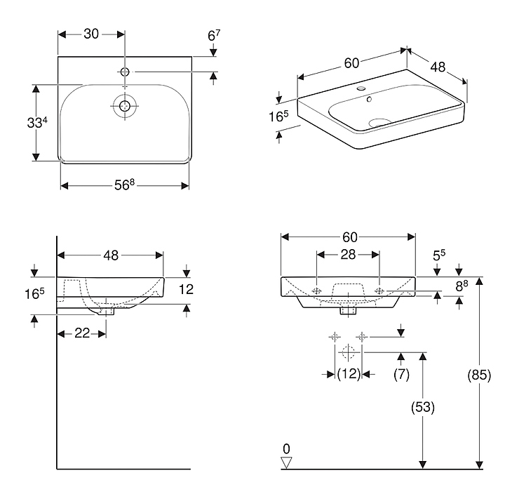 Раковина подвесная Geberit Smyle Square 500.229.01.1