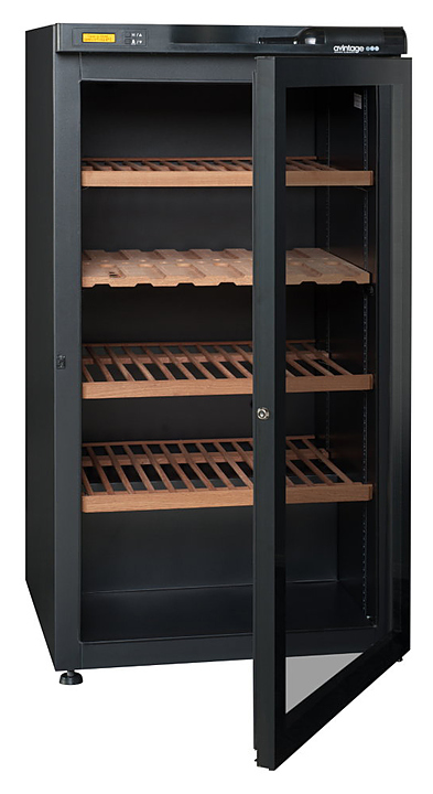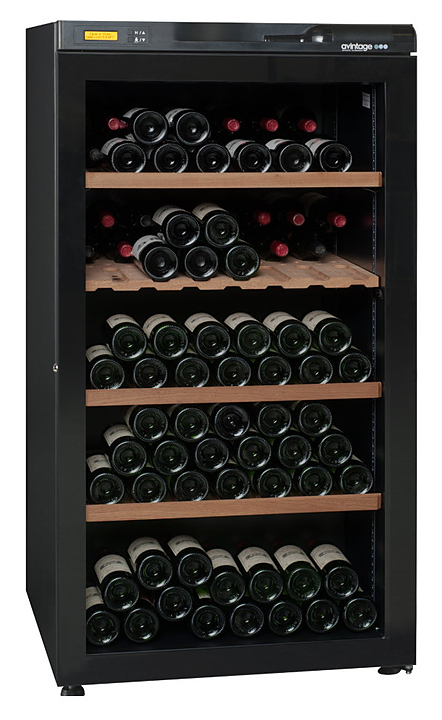 Винный шкаф Climadiff Avintage AVV206AU предназначен для хранения вина при определенном уровне влажности и температуры в ресторанах, специализированных магазинах, отелях, подсобных складских помещениях, в частных домах или квартирах. Модель оснащена электронным термостатом с цифровым дисплеем, 2 колесами и 2 регулируемыми ножками. Корпус и внутренние стенки выполнены из металла, дверь - из двойного закаленного стекла с защитой от УФ-лучей. Особенности: