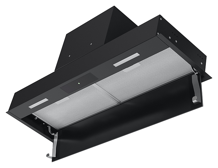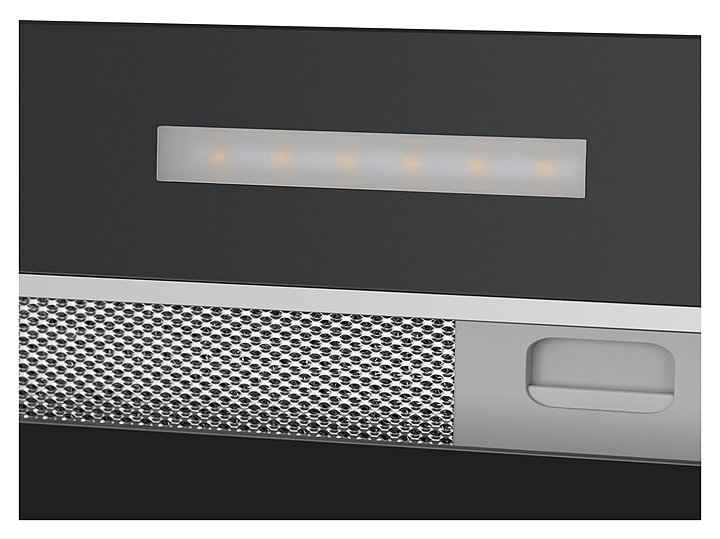 Встраиваемая кухонная вытяжка Maunfeld Fantasy 90 предназначена для очистки воздуха от продуктов горения, копоти и запахов в процессе приготовления пищи путем принудительной вентиляции в домашних условиях. Модель оснащена электродвигателем Fime (Италия), 2 светодиодными светильниками, сенсорной панелью управления с подсветкой клавиш и цифровым дисплеем. Корпус прибора выполнен из высококачественной стали с термостойким покрытием черного цвета, фильтр – из алюминия, корпус пульта – из пластика черного цвета. В комплект поставки входят пульт дистанционного управления, набор монтажных креплений и инструкция по эксплуатации. Особенности: