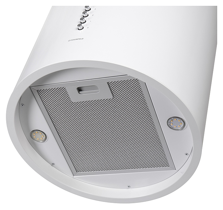 Островная кухонная вытяжка Maunfeld Lee Push 39 предназначена для очистки воздуха от продуктов горения, копоти и запахов в процессе приготовления пищи путем принудительной вентиляции в домашних условиях. Модель оснащена электродвигателем Fime (Италия), 2 круглыми светодиодными светильниками и кнопочной панелью управления. Корпус цилиндрической формы выполнен из высококачественной стали с термостойким покрытием белого цвета, фильтр – из алюминия. В комплект поставки входят набор монтажных креплений, адаптер на 120 мм с антивозвратным клапаном и инструкция по эксплуатации. Особенности: