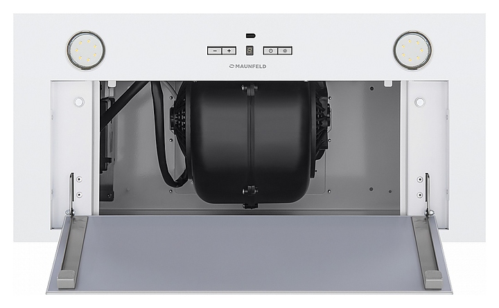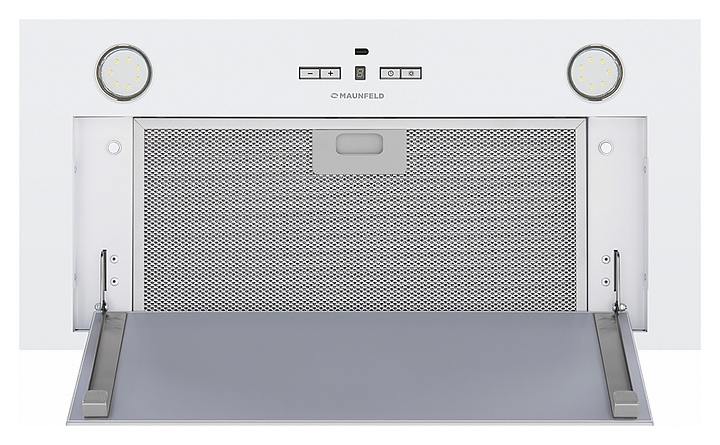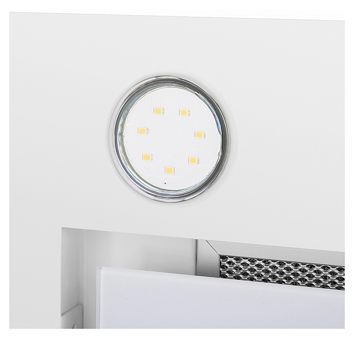 Встраиваемая кухонная вытяжка Maunfeld Fantasy 1000ST 60 предназначена для очистки воздуха от продуктов горения, копоти и запахов в процессе приготовления пищи путем принудительной вентиляции в домашних условиях. Модель оснащена электродвигателем Fime (Италия), 2 круглыми светодиодными светильниками, кнопочной панелью управления Soft Touch и цифровым дисплеем. Корпус выполнен из высококачественной стали с термостойким покрытием белого цвета, откидная панель – из белого закаленного стекла с глянцевой поверхностью, фильтр – из алюминия. В комплект поставки входят пульт дистанционного управления, набор монтажных креплений и инструкция по эксплуатации. Особенности: