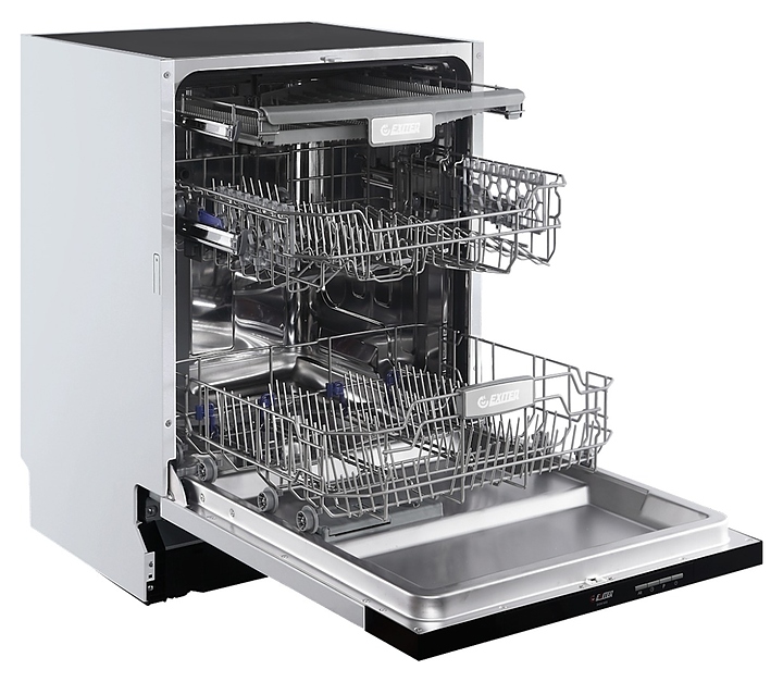 Встраиваемая посудомоечная машина EXITEQ EXDW-I603 используется в частных домах, квартирах, отелях, кафе и ресторанах для мойки бокалов, чашек, тарелок, сковородок, кастрюль и столовых приборов. Модель оснащена электронной панелью управления с дисплеем, светодиодной индикацией и часами. Панель управления выполнена из стали, стекла и пластика. В комплект поставки входят выдвижные корзины для столовых приборов: малая, средняя для чашек и тарелок, большая для кастрюль, сковородок и тарелок; мерная ложечка, крепежный комплект и универсальный переходник для подключения к водопроводному крану раковины. Программы: