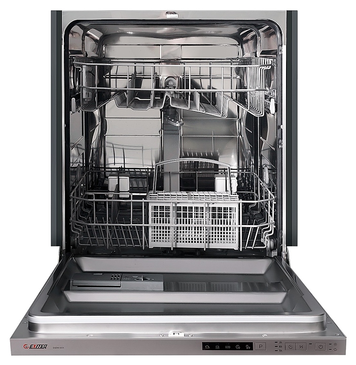 Встраиваемая посудомоечная машина EXITEQ EXDW-I604 используется в частных домах, квартирах, отелях, кафе и ресторанах для мойки бокалов, чашек, тарелок, сковородок, кастрюль и столовых приборов. Модель оснащена электронной панелью управления с дисплеем и светодиодной индикацией. Панель управления выполнена из стали и пластика. В комплект поставки входят корзины для столовых приборов (малая); верхняя и нижняя для чашек и тарелок, крепежный комплект и универсальный переходник для подключения к водопроводному крану раковины. Программы: