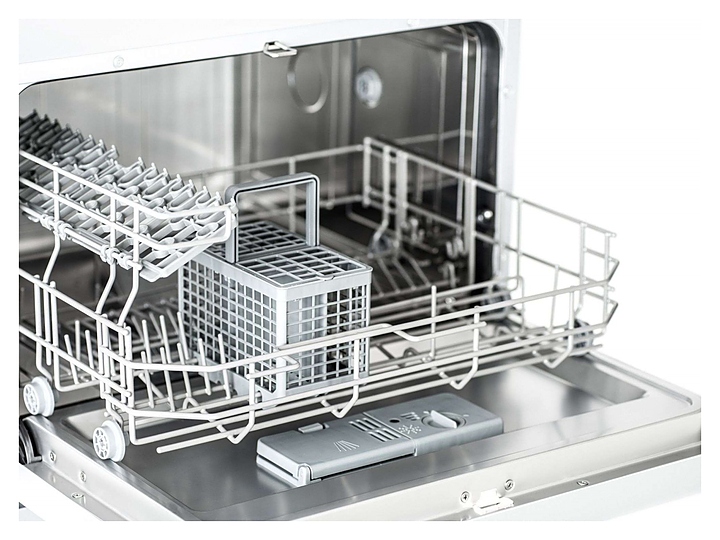 Настольная посудомоечная машина EXITEQ EXDW-T502 используется в частных домах, квартирах, отелях, кафе и ресторанах для мойки бокалов, чашек, тарелок, сковородок, кастрюль и столовых приборов. Модель оснащена электронной панелью управления, часами и светодиодной индикацией. Панель управления выполнена из стали, стекла и пластика. В комплект поставки входят корзинка для столовых приборов, короб для посуды, ложка мерная 20 гр, стаканчик мерный 30 / 60 мл и воронка для засыпания соли. Программы: