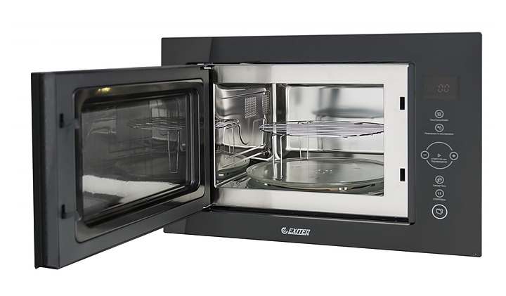 Встраиваемая микроволновая печь EXITEQ EXM-106 предназначена для приготовления пищи, подогрева готовых блюд и ингридиентов, а также размораживания полуфабрикатов на предприятиях общественного питания и в домашних условиях. Модель оснащена электронной панелью управления с LED-дисплеем, часами и таймером автоотключения. Корпус выполнен из нержавеющей стали, панель управления - из стекла, внутреннее покрытие камеры - из полированной нержавеющей стали. В комплект поставки входят решётка для гриля и стеклянный поднос, вращающееся кольцо уплотнения, присоска для открывания дверцы без электричества, кронштейн, 3 винта и заглушка. Автоматические программы: