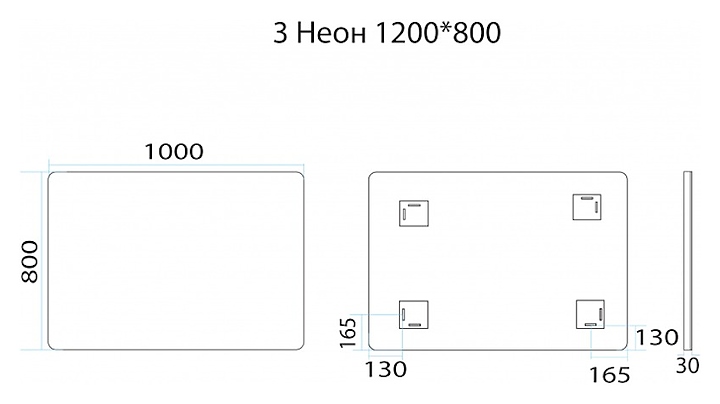 Зеркало Misty Неон 3 LED 100х80 см с подсветкой и сенсорным выкл. на корпусе