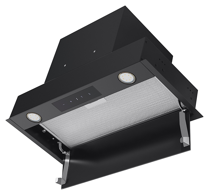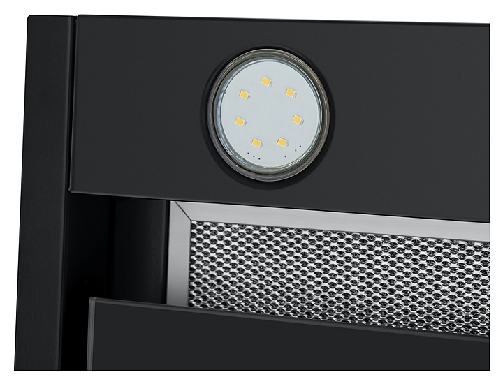 Встраиваемая кухонная вытяжка Maunfeld Fantasy Light 60 предназначена для очистки воздуха от продуктов горения, копоти и запахов в процессе приготовления пищи путем принудительной вентиляции в домашних условиях. Модель оснащена электродвигателем Fime (Италия), 2 круглыми светодиодными светильниками, сенсорной панелью управления с синей подсветкой клавиш и цифровым дисплеем. Корпус выполнен из высококачественной стали с термостойким покрытием черного цвета, откидная панель – из закаленного стекла черного цвета с глянцевой поверхностью, фильтр – из алюминия. В комплект поставки входят пульт дистанционного управления, набор монтажных креплений, адаптер на 120 мм с антивозвратным клапаном и инструкция по эксплуатации. Особенности:
