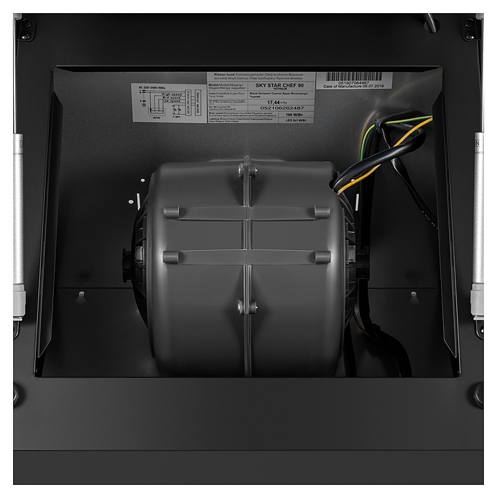 Пристенная кухонная вытяжка Maunfeld Sky Star Chef 90 предназначена для очистки воздуха от продуктов горения, копоти и запахов в процессе приготовления пищи путем принудительной вентиляции в домашних условиях. Модель оснащена электродвигателем Fime (Италия), наклонной фасадной панелью, 2 круглыми светодиодными светильниками, сенсорной панелью управления с подсветкой клавиш и цифровым дисплеем. Корпус выполнен из высококачественной стали с термостойким эмалированным покрытием черного цвета, наклонная панель – из прочного изогнутого закаленного стекла черного цвета с глянцевой поверхностью, фильтр – из алюминия. В комплект поставки входят набор монтажных креплений, гофра, антивозвратный клапан и инструкция по эксплуатации. Особенности: