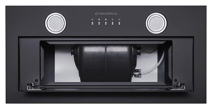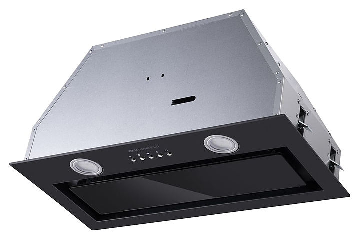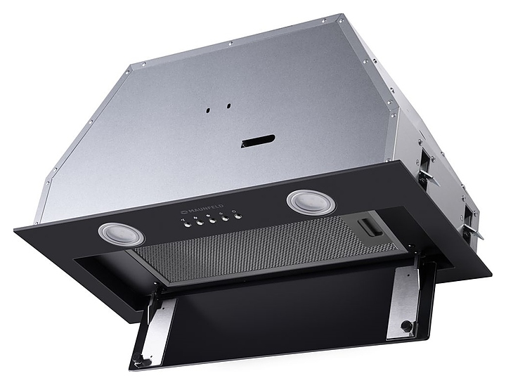 Встраиваемая кухонная вытяжка Maunfeld Trapeze 602IG предназначена для очистки воздуха от продуктов горения, копоти и запахов в процессе приготовления пищи путем принудительной вентиляции в домашних условиях. Модель оснащена электродвигателем Fime (Италия), 2 круглыми светодиодными светильниками и кнопочной панелью управления. Корпус выполнен из высококачественной нержавеющей стали, наружная часть с термостойким покрытием черного цвета, откидная панель – из закаленного стекла черного цвета с глянцевой поверхностью, фильтр – из алюминия. В комплект поставки входят набор монтажных креплений, адаптер на 120 мм с антивозвратным клапаном и инструкция по эксплуатации. Особенности: