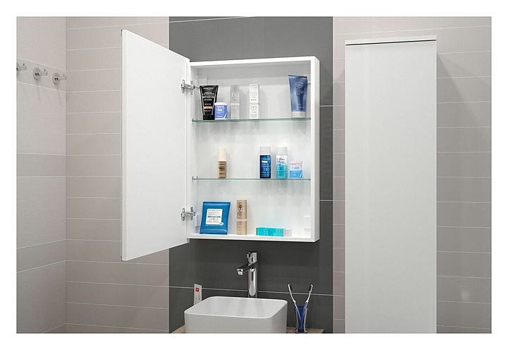 Зеркальный шкаф Misty Алюр популярной российской компании выполнен в современном стиле и прекрасно впишется в интерьер любой ванной комнаты. Благодаря подвесной конструкции модель не занимает много места, что позволяет экономить пространство, а также облегчает уборку. Модель оснащена встроенной светодиодной подсветкой, зеркальной дверцей и стеклянными полками внутри, сенсорным выключателем и диммером для регулирования яркости света. Корпус и фасад выполнены из МДФ. Комплектация: