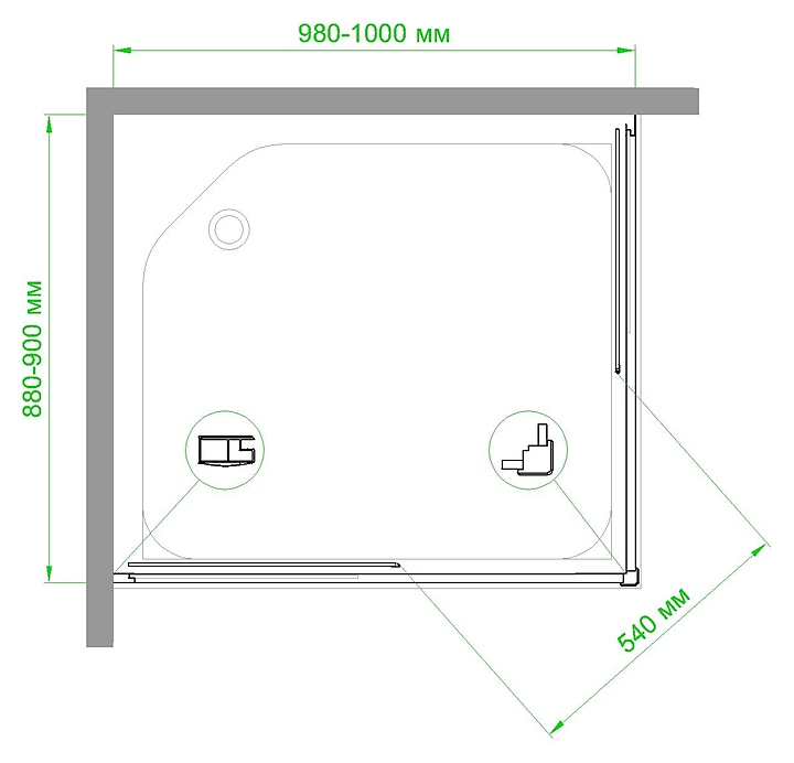 Уголок душевой Royal Bath RB HPD-С-BL 100x90x185 см, матовое, чёрный профиль