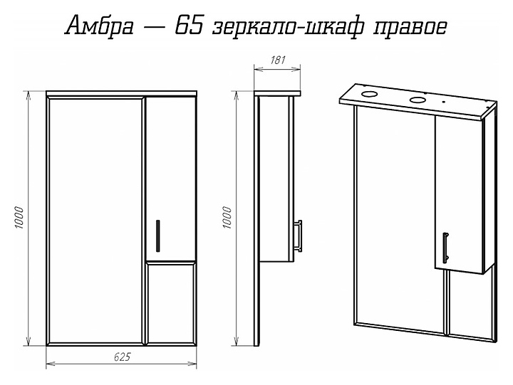 Зеркало Misty Амбра-65 62,5х100 см со шкафчиком, правое, белое