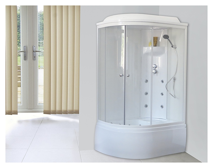 Душевая кабина Royal Bath RB8120BK3-WT-R предназначена для использования в ванных комнатах. Модель оснащена гидромассажной системой состоящей из 6 форсунок и душевым гарнитуром, который включает в себя смеситель, тропический душ и эргономичную ручную лейку. Наличие сиденья обеспечивает максимальный комфорт при приеме душа, а на полке можно размещать необходимые мыльные принадлежности. Изделие выполнено из акрила, устойчивого к механическим повреждениям, обладающего небольшим весом и повышенной шумоизоляцией, безопасного закаленного стекла и усиленного алюминиевого профиля, чтобы обеспечить аккуратное скольжение раздвижных дверей, предусмотрены съемные подшипниковые ролики. Сифон входит в комплект поставки. Особенности: