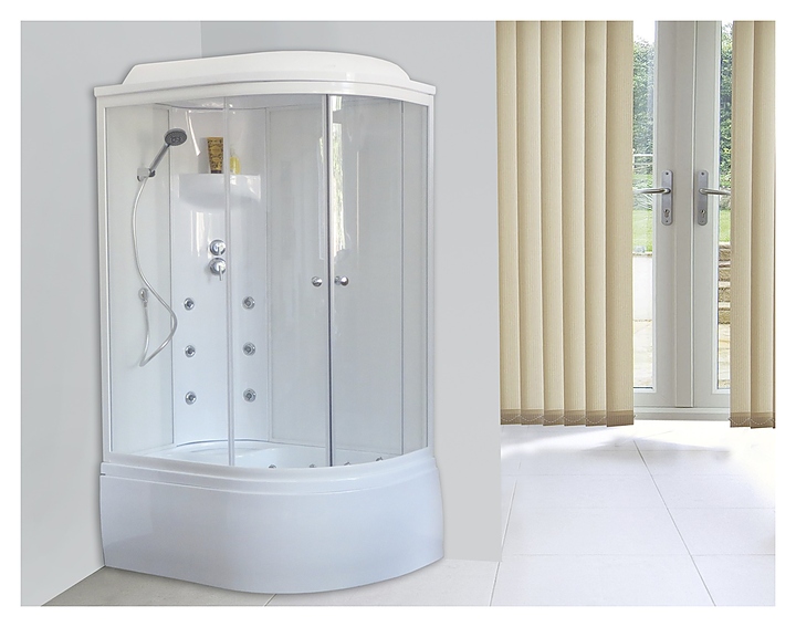 Душевая кабина Royal Bath RB8120BK3-WT-L предназначена для использования в ванных комнатах. Модель оснащена гидромассажной системой состоящей из 6 форсунок и душевым гарнитуром, который включает в себя смеситель, тропический душ и эргономичную ручную лейку. Наличие сиденья обеспечивает максимальный комфорт при приеме душа, а на полке можно размещать необходимые мыльные принадлежности. Изделие выполнено из акрила, устойчивого к механическим повреждениям, обладающего небольшим весом и повышенной шумоизоляцией, безопасного закаленного стекла и усиленного алюминиевого профиля, чтобы обеспечить аккуратное скольжение раздвижных дверей, предусмотрены съемные подшипниковые ролики. Сифон входит в комплект поставки. Особенности: