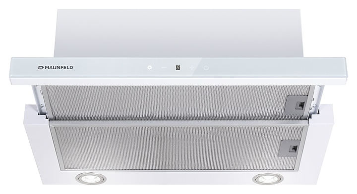Встраиваемая кухонная вытяжка Maunfeld TS Touch 50 предназначена для очистки воздуха от продуктов горения, копоти и запахов в процессе приготовления пищи путем принудительной вентиляции в домашних условиях. Модель оснащена электродвигателем Fime (Италия), выдвижной панелью, 2 круглыми светодиодными светильниками и сенсорной панелью управления с белой подсветкой клавиш. Корпус выполнен из высококачественной стали с термостойким покрытием белого цвета, фасад выдвижной панели – из прочного закаленного стекла с глянцевой поверхностью, фильтр – из алюминия. В комплект поставки входят набор монтажных креплений, адаптер на 120 мм с антивозвратным клапаном и инструкция по эксплуатации. Особенности: