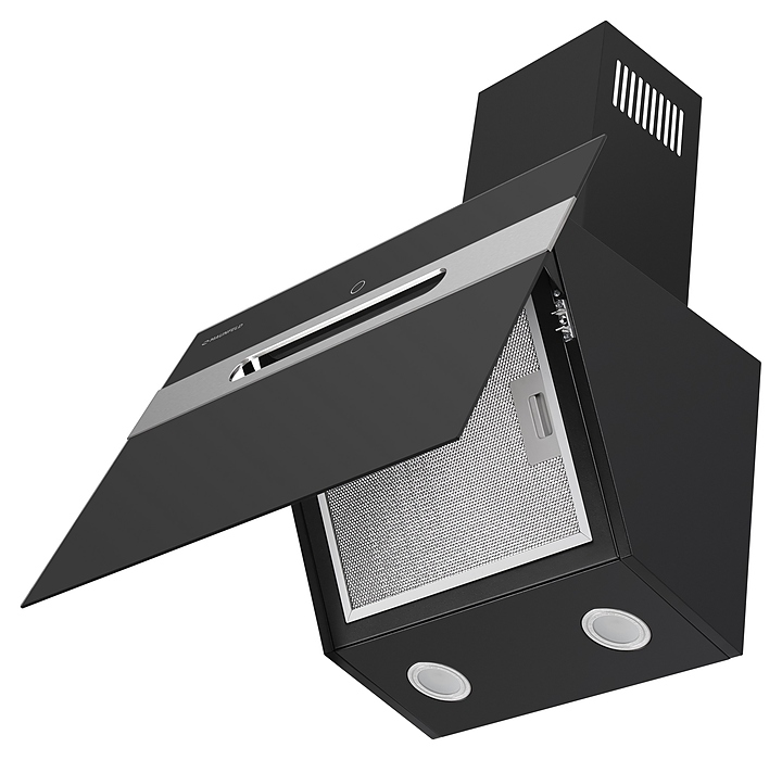 Пристенная кухонная вытяжка Maunfeld Moon 60 предназначена для очистки воздуха от продуктов горения, копоти и запахов в процессе приготовления пищи путем принудительной вентиляции в домашних условиях. Модель оснащена электродвигателем Fime (Италия), наклонной фасадной панелью, 2 круглыми светодиодными светильниками, сенсорной панелью управления с синей подсветкой клавиш и цифровым дисплеем. Корпус выполнен из высококачественной стали с термостойким покрытием черного цвета, наклонная панель – из прочного черного закаленного стекла с глянцевой поверхностью и декративной горизонтальной вставкой из нержавеющей стали с матированной поверхностью, фильтр – из алюминия. В комплект поставки входят набор монтажных креплений, гофра, антивозвратный клапан и инструкция по эксплуатации. Особенности: