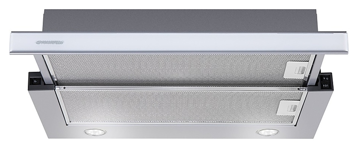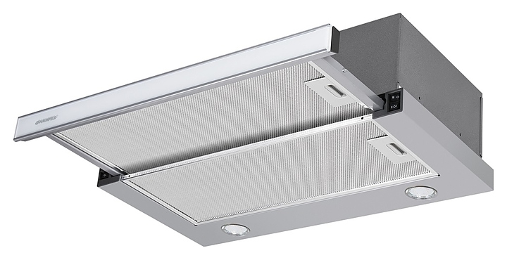 Встраиваемая кухонная вытяжка Maunfeld VS Slide 60 предназначена для очистки воздуха от продуктов горения, копоти и запахов в процессе приготовления пищи путем принудительной вентиляции в домашних условиях. Модель оснащена электродвигателем Fime (Италия), выдвижной панелью, 2 круглыми светодиодными светильниками и панелью управления с 2 колыбельными переключателями. Корпус выполнен из высококачественной нержавеющей стали с матированной поверхностью, фасад выдвижной панели – из прочного закаленного стекла белого цвета с глянцевой поверхностью, фильтр – из алюминия. В комплект поставки входят набор монтажных креплений, антивозвратный клапан и инструкция по эксплуатации. Особенности: