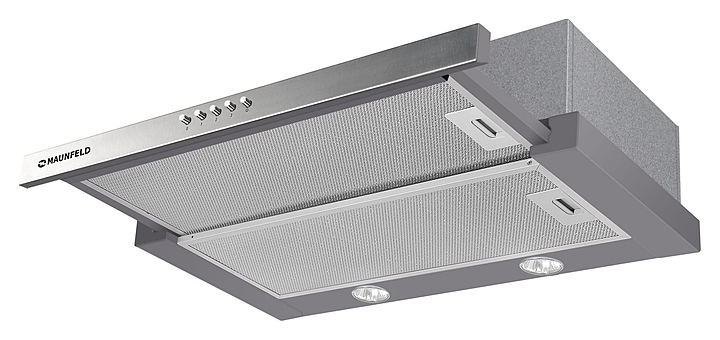 Встраиваемая кухонная вытяжка Maunfeld VSH 60 предназначена для очистки воздуха от продуктов горения, копоти и запахов в процессе приготовления пищи путем принудительной вентиляции в домашних условиях. Модель оснащена 2 электродвигателями Fime (Италия), выдвижной панелью, 2 круглыми галогенными светильниками и кнопочной панелью управления. Корпус выполнен из высококачественной нержавеющей стали с матированной поверхностью, фасад выдвижной панели – из полированной нержавеющей стали, фильтр – из алюминия. В комплект поставки входят набор монтажных креплений, адаптер на 150 мм, антивозвратный клапан и инструкция по эксплуатации. Особенности: