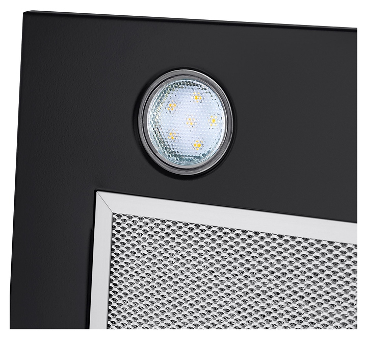 Встраиваемая кухонная вытяжка Maunfeld Crosby Singl 60 предназначена для очистки воздуха от продуктов горения, копоти и запахов в процессе приготовления пищи путем принудительной вентиляции в домашних условиях. Модель оснащена электродвигателем Fime (Италия), 2 круглыми светодиодными светильниками и кнопочной панелью управления. Корпус выполнен из высококачественной нержавеющей стали с покрытием наружной части термостойкой эмалью черного цвета, фильтр – из алюминия. В комплект поставки входят набор монтажных креплений, антивозвратный клапан и инструкция по эксплуатации. Особенности: