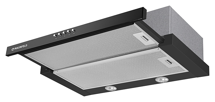 Встраиваемая кухонная вытяжка Maunfeld VSH 60 предназначена для очистки воздуха от продуктов горения, копоти и запахов в процессе приготовления пищи путем принудительной вентиляции в домашних условиях. Модель оснащена 2 электродвигателями Fime (Италия), выдвижной панелью, 2 круглыми галогенными светильниками и кнопочной панелью управления. Корпус выполнен из высококачественной нержавеющей стали, наружная часть с термостойким покрытием черного цвета, фильтр – из алюминия. В комплект поставки входят набор монтажных креплений, адаптер на 150 мм, антивозвратный клапан и инструкция по эксплуатации. Особенности: