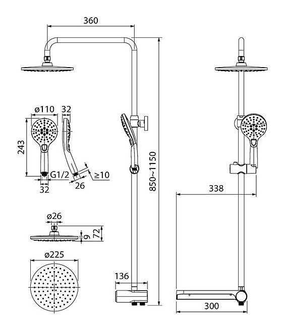 Душевая стойка IDDIS Ray RAYMS3Fi76 используется в ванных комнатах. Модель оснащена круглыми лейкой и верхним душем. Полочка с кнопочным дивертором служит для размещения аксессуаров. Шланги оснащены функцией защиты от перекручивания. Изделие выполнено из нержавеющей стали с электрофоретическим покрытием для защиты от влаги, шланги - из ПВХ. В комплект поставки входят 2 шланга. Особенности: