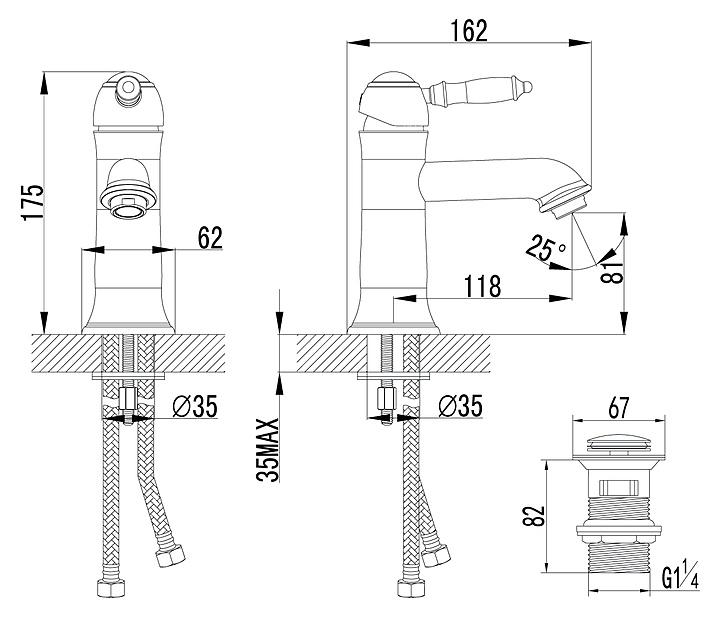 Смеситель для раковины LEMARK Villa LM4806C предназначен для использования в ванных помещениях для подачи горячей и холодной воды. Серия Villa выполнена в стиле ретро. Модель оснащена донным клапаном Click-Clack и керамическим картриджем, обеспечивающим плавный ход рычага смесителя, контроль и точность при выборе напора и температуры воды. Изделие выполнено из высококачественной латуни, отличающейся прочностью, долговечностью и устойчивостью к перепадам температур. В комплект поставки входят крепления, аэратор и гибкая подводка. Дополнительные характеристики: