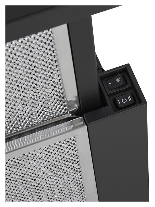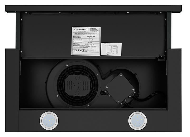 Встраиваемая кухонная вытяжка Maunfeld VS Light 50 предназначена для очистки воздуха от продуктов горения, копоти и запахов в процессе приготовления пищи путем принудительной вентиляции в домашних условиях. Модель оснащена электродвигателем Fime (Италия), выдвижной панелью, 2 круглыми светодиодными светильниками и панелью управления с 2 колыбельными переключателями. Корпус выполнен из высококачественной стали с термостойким покрытием черного цвета, фильтр – из алюминия. В комплект поставки входят набор монтажных креплений, адаптер на 150 мм, антивозвратный клапан и инструкция по эксплуатации. Особенности:
