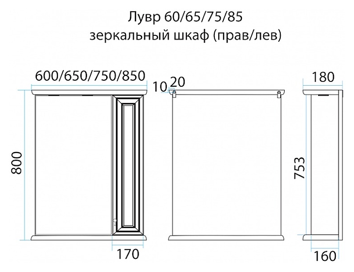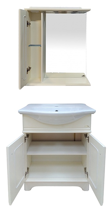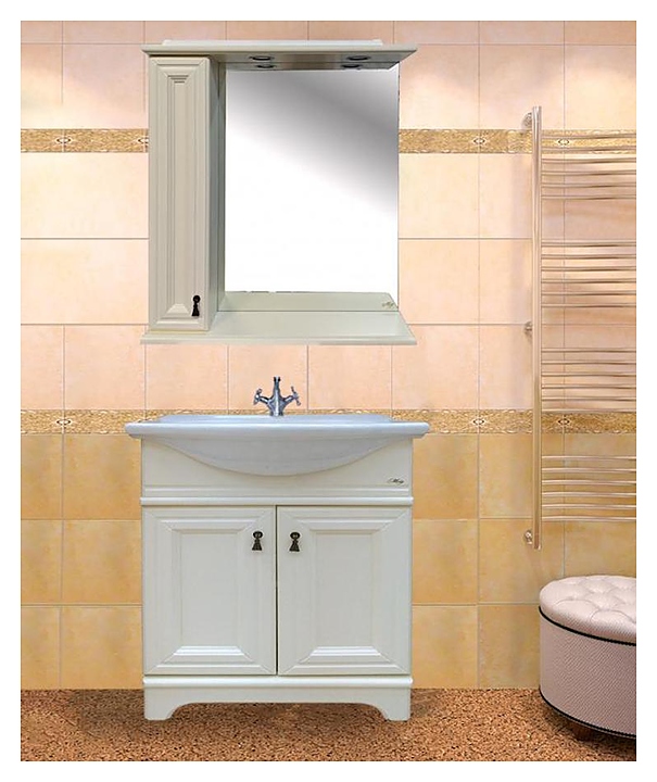 Шкаф зеркальный Misty Лувр-75 75х80 см с подсветкой, левый, слоновая кость