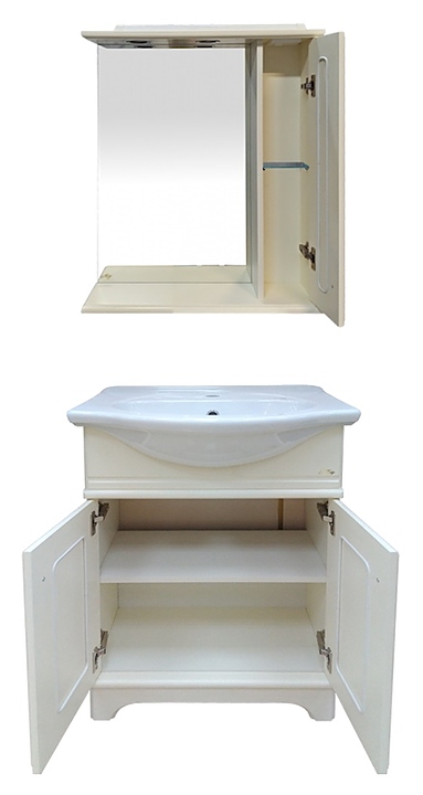 Шкаф зеркальный Misty Лувр-75 75х80 см с подсветкой, правый, слоновая кость