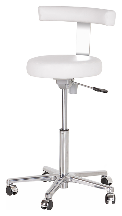 Стул мастера Пластэк-Техник Мастер используется в косметологических центрах, салонах красоты, маникюрных студиях и массажных кабинетах для расположения специалиста при проведении различных процедур, а также подходит для домашнего бытового интерьера. Модель оснащена удобными мягкими сиденьем и спинкой, устойчивым основанием с пятилучьем на колесах и рычагом регулировки. Сиденье и спинка выполнены из плотного листового поролона, обивка - из высококачественной экокожи, изготовленной в Германии (Konrad Hornschuch AG), пятилучье имеет хромированное покрытие. Особенности: