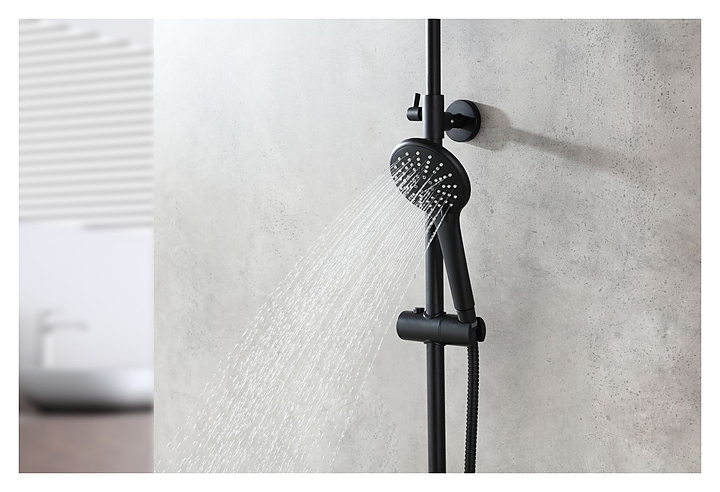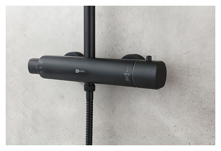 Душевая стойка LEMARK Bronx LM3770BL используется в ванных комнатах. Модель оснащена круглыми верхним душем и ручной лейкой. Термостатический картридж обеспечивает постоянную температуру воды, что исключает ожоги во время водных процедур. Изделие выполнено из латуни, которая отличается прочностью, долговечностью и устойчивостью к перепадам температур. В комплект поставки входят верхняя лейка, ручная лейка, крепление для лейки и шланг. Особенности: