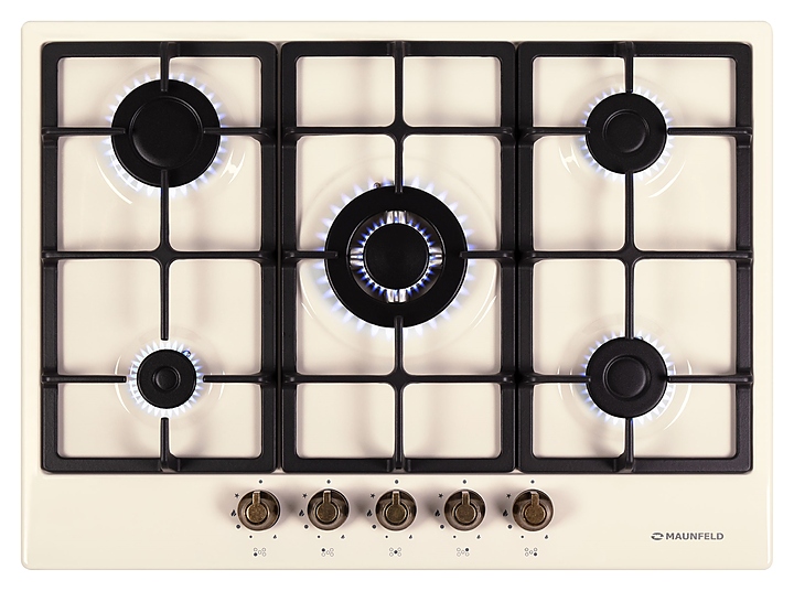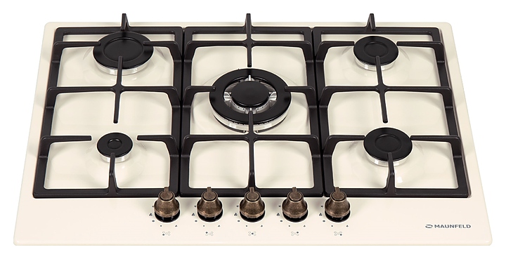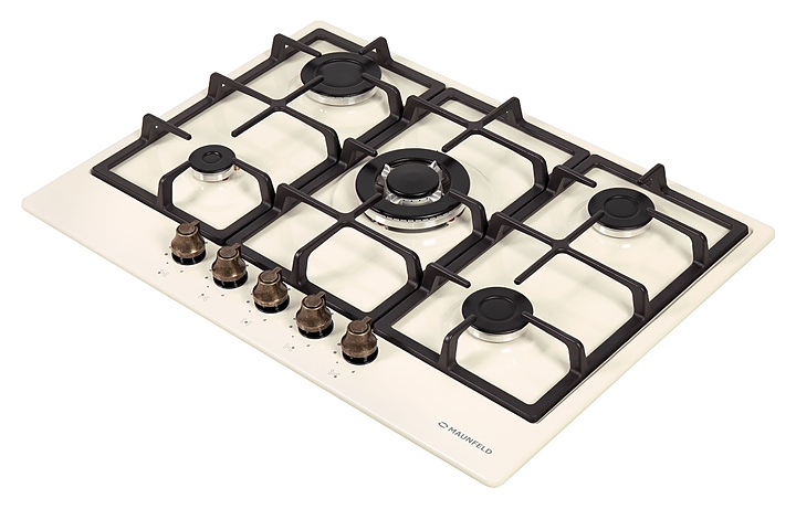 Газовая варочная панель Maunfeld EGHE.75.33CBG2.R/G предназначена для приготовления большого ассортимента блюд на предприятих общественного питания и в домашних условиях. Модель оснащена 5 высококачественными конфорками Sabaf (Италия) различной мощности, 3 решетками, 5 поворотными переключателями и кабелем питания с вилкой. Корпус выполнен из нержавеющей стали, рабочая поверхность с износостойким эмалированным покрытием бежевого оттенка, решетки – из чугуна с нескользящей низкопористой поверхностью и резиновыми подкладками для предотвращения механических повреждений поверхности, переключатели – цельнометаллические с декоративным рельефом и покрытием под состаренную бронзу. В комплект поставки входят набор монтажных креплений и сменные жиклеры Sourdillon (Франция) для балонного газа. Особенности: